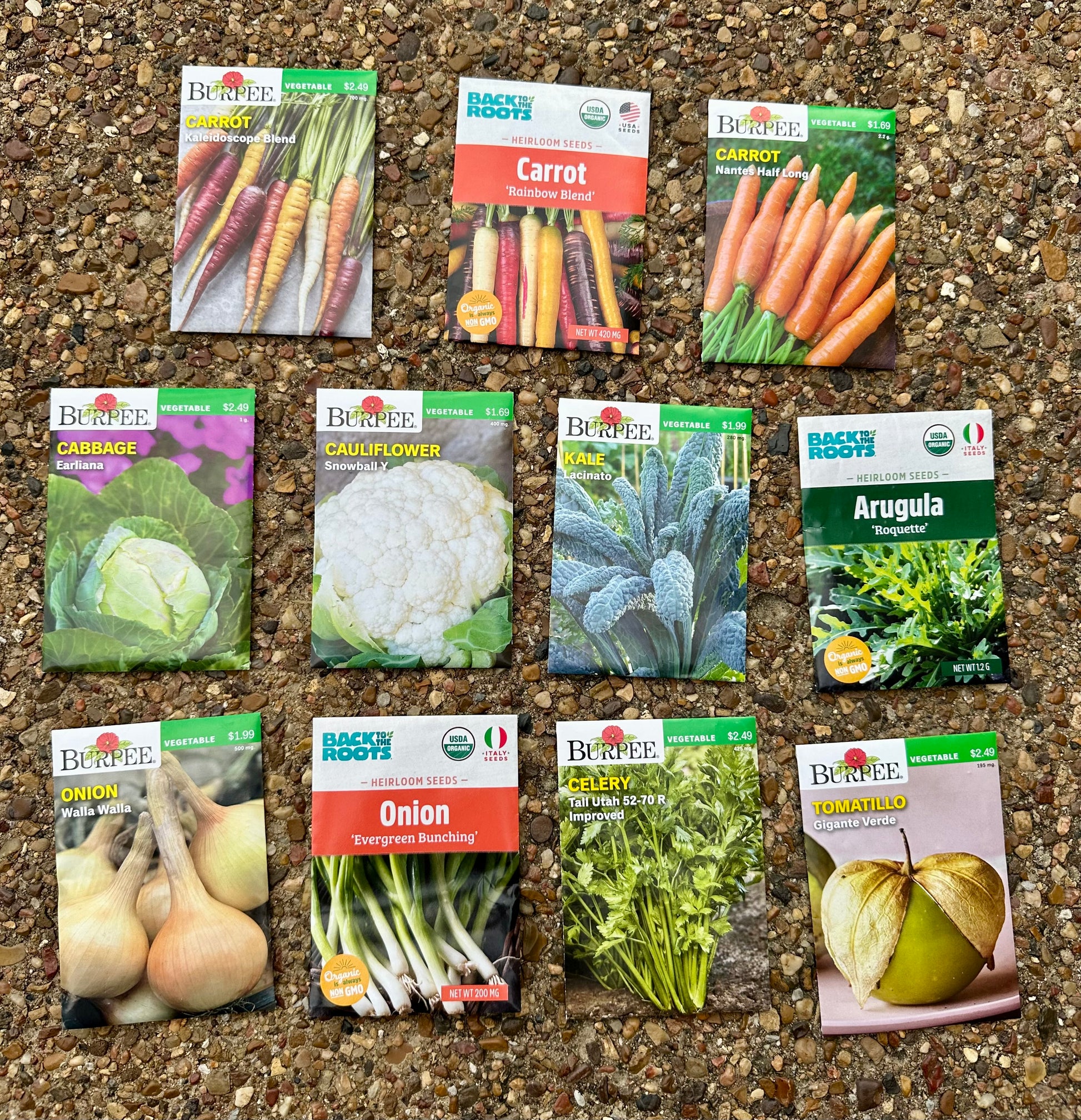 Each bag will contain a variety pack of 10 vegetable seeds valued at $1.69 - $2.49 per pack, for only $10! Possible seeds in your grab bag include but are not limited to the following: Tomato, Cucumber, Peppers, Lettuce, Squash, Carrots, Spinach, Peas, Beans, Corn, Radish, Beets, etc.
